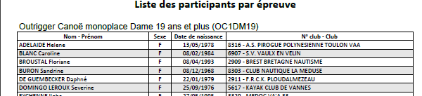 - Course courte des championnats de France = ouverte à tous sous conditions habituelles (pagaie couleur + certificat médical) ;